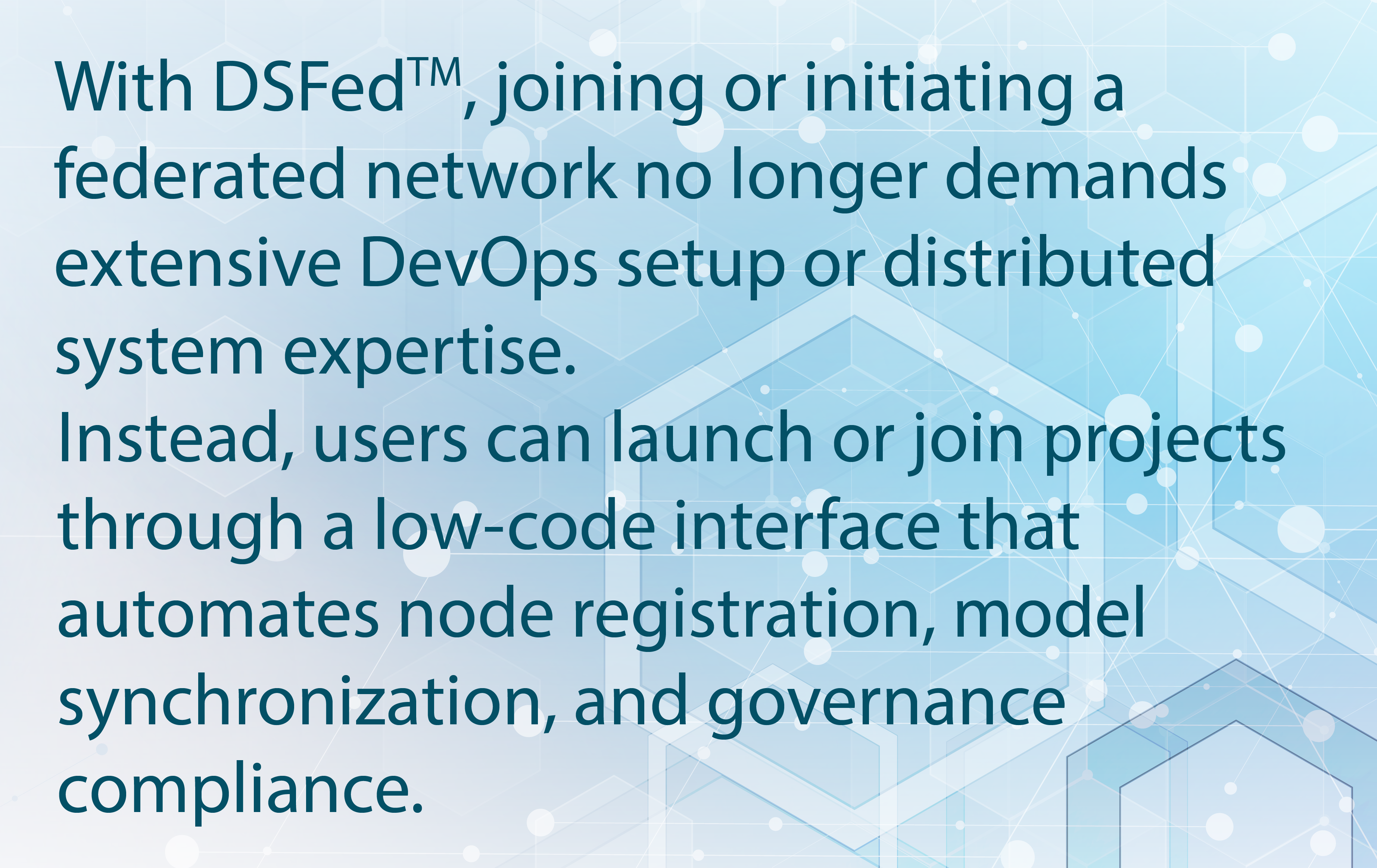 By bringing usability, automation, and community into one platform, DSFed removes much of the friction that has historically slowed federated collaboration. It is not just an implementation of FL; it is the operationalization of its promise. Built on human-centered design and proven real-world deployments, DSFed™ helps organizations move from theory to practice and turn their data into shared intelligence securely and collaboratively.